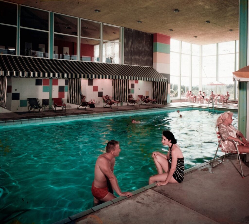 The hotel went through a series of interior renovations over the years to keep with the times— though the Music Mountain amphitheater still stands, a singular wing and the outdoor pool are now the only structures left from the original hotel.