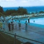 - The pool at the Glen Wilde, with some of the bungalows in the background. Photo: Unknown.
