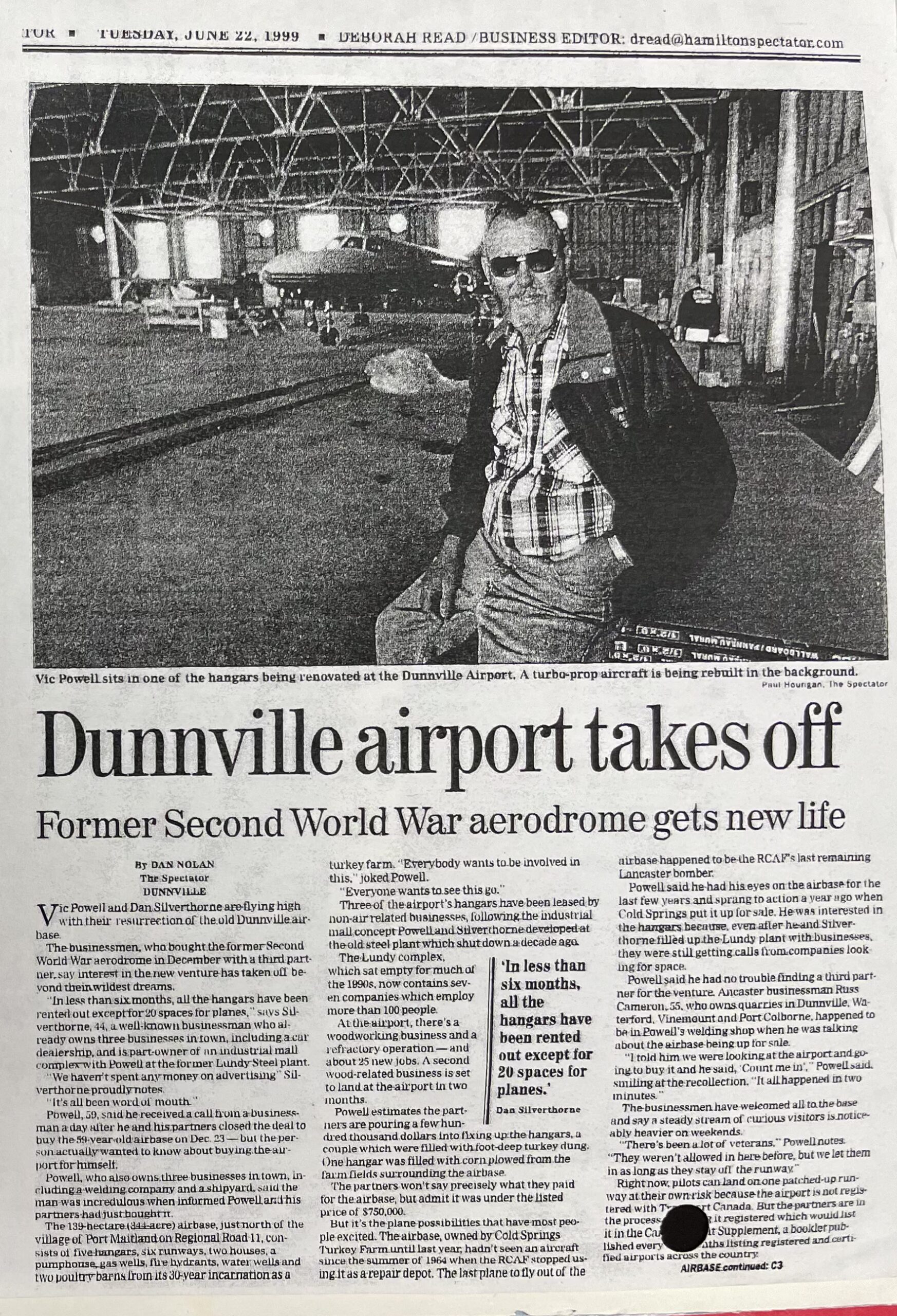 All that remains of the is the airfield and the hangar, now in use as the Emsdale Airport.