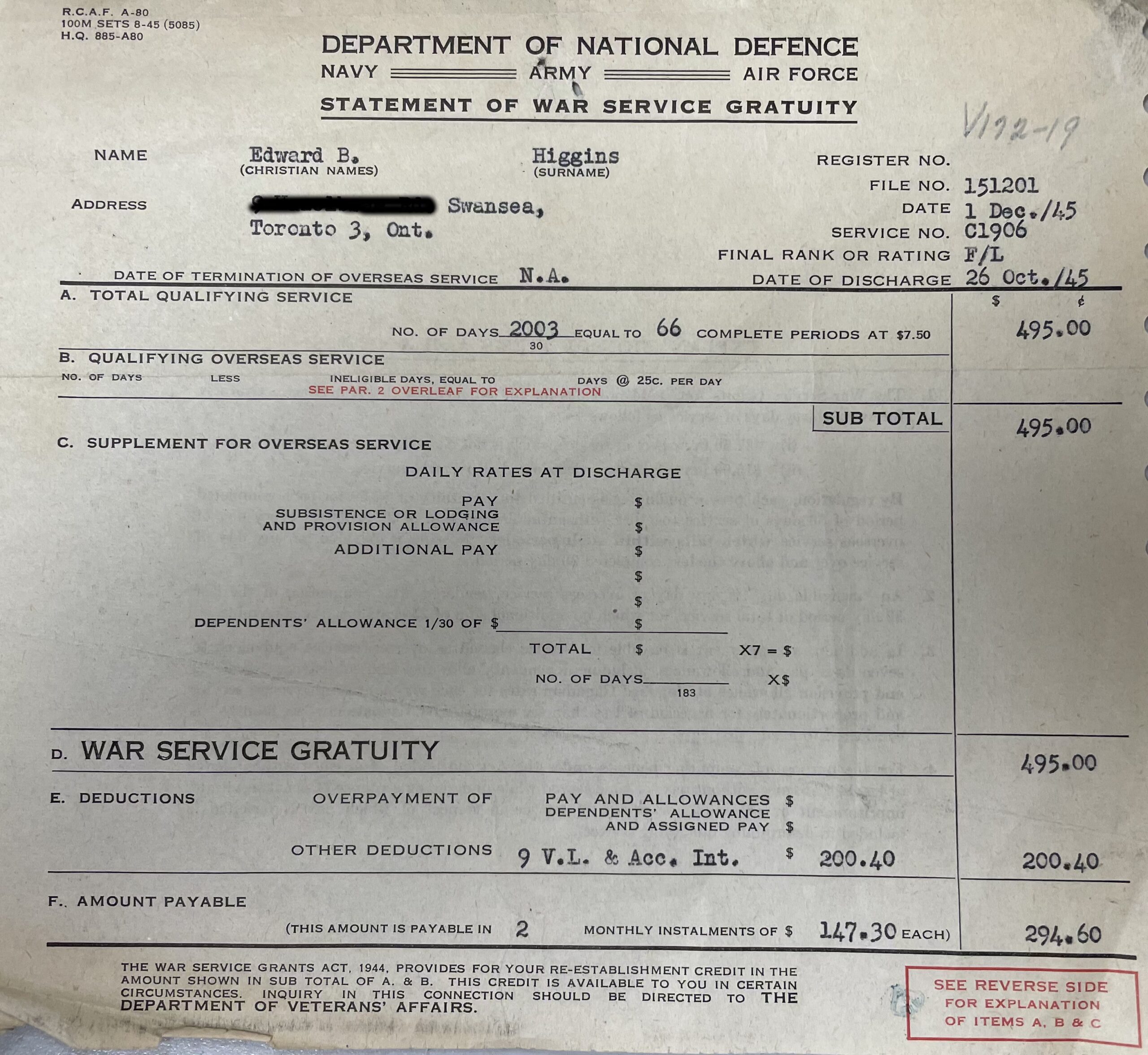 Established in July 1941 on the east side of Highbury Avenue as the new home for the Vehicle Reception and Assembly Depot (VRAD), under the command of the Royal Canadian Ordnance Corps.