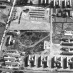 - The two remaining WWII buildings, left and centre, with a new building on the right. Photo: Google Maps.