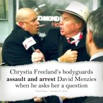 January 2024 The arrest of Rebel News reporter David Menzies by the RCMP security detail for Deputy Prime Minister Chrystia Freeland for scrumming her outside the Richmond Hill Performing Arts Centre on 8 January, should be very alarming to all Canadians. Freeland was attending a memorial vigil for the victims of the shooting down of …