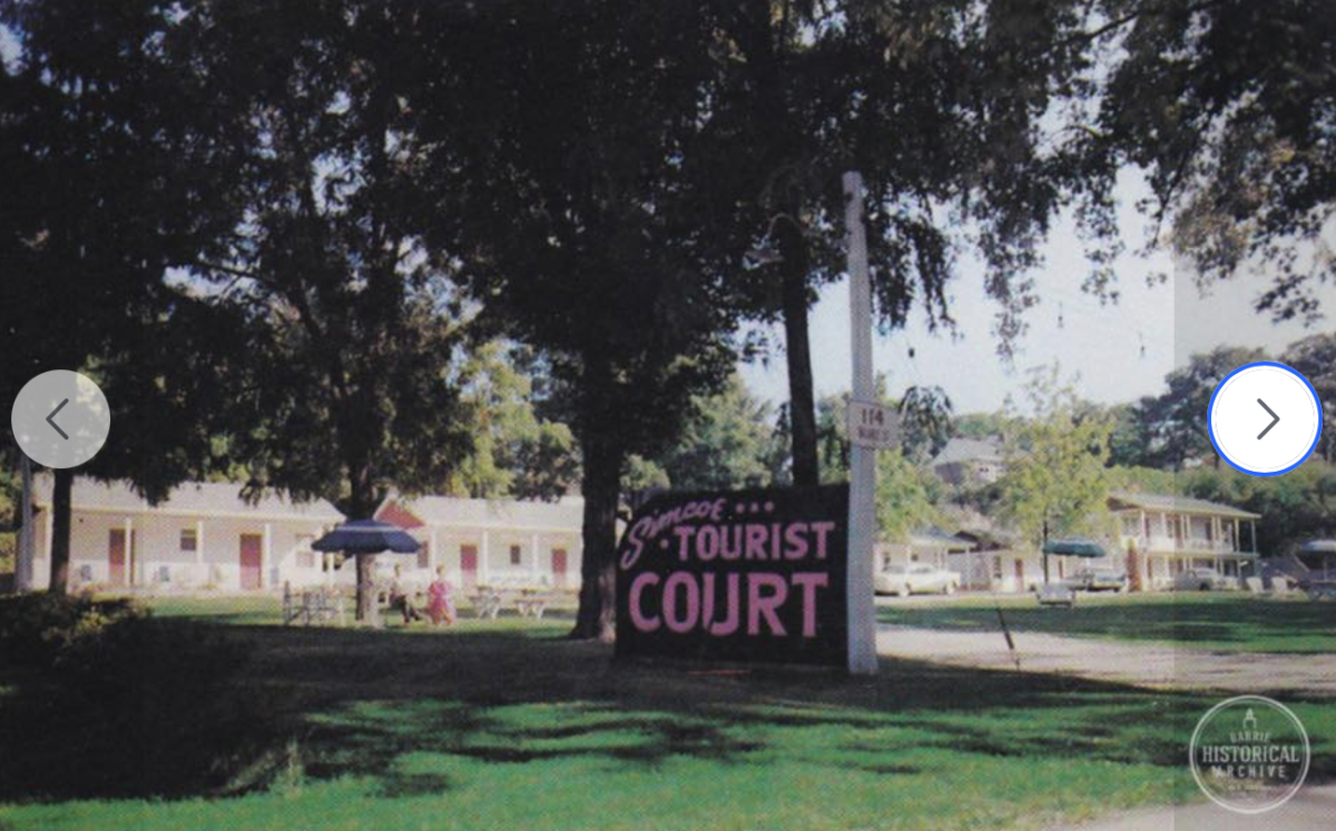 This and the fact that unlike today’s cars, vehicles of the past were less efficient and drivers were required to stop more frequently for gas and oil. As a result, numerous motels opened along the route, giving weary travelers a chance to grab a meal or spend the night, allowing them to breakup the trip over a couple of days. One of the motels in the then-Town of Barrie was Lake Simcoe Motel along Blake Street/Highway 11.