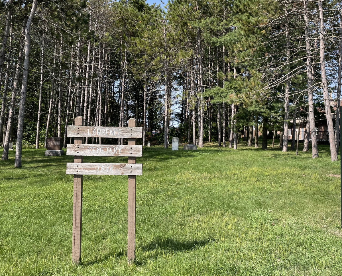 The land for Lawrence Cemetery was bought by Wesleyan Methodist Church in 1844 for a chapel and burial ground from John and Clarissa Lawrence.