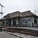 Included in the restoration was construction of a wood “passenger platform” and laying a small section of railway track to represent the rail line that used to run past the station.