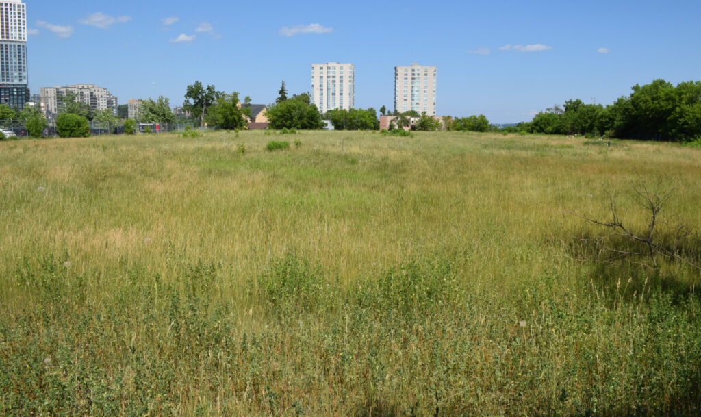 The city maintained the field, a a granular track, a natural turf football field, until 2018 as a community sports field, but it sits abandoned as the city seeks viable re-development proposals for the former school land.